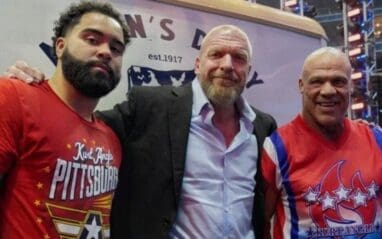Kurt Angle reunited with his “son” Jason Jordan during the show as well. Jordan gave him a handmade world’s greatest dad card. The two posed together for a picture as well.