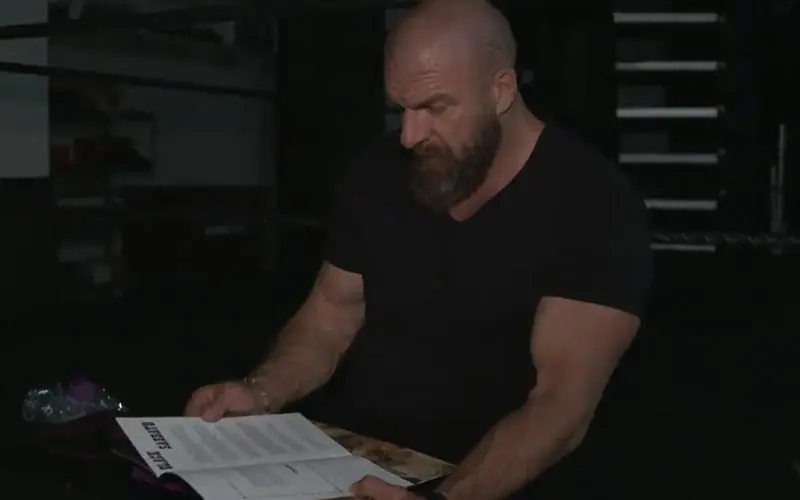 While flipping through a large book full of band photos, news clippings, and other pieces of history, Triple H said “I can’t wait to look through this” when he has more time.