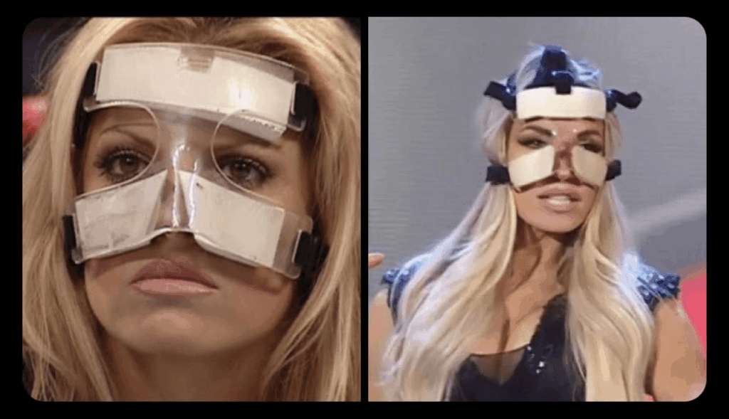 In case you’re keeping track, this isn’t the first time that Trish Stratus wore a face mask like this.