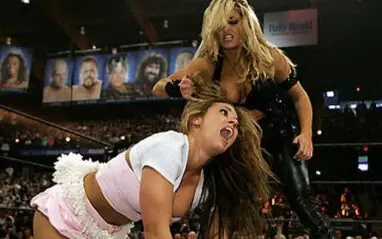 At WrestleMania 22, Trish Stratus defended her WWE Women’s Championship against Mickie James. It turned out to be one of the best women’s matches in the company, as it saw James beat her idol Stratus for the title.