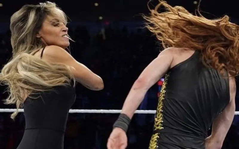 During the latest WWE Toronto live event, Becky Lynch successfully defended her RAW Women’s Championship against Rhea Ripley. Following the match, Trish Stratus slapped Becky Lynch very hard.