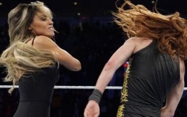 During the latest WWE Toronto live event, Becky Lynch successfully defended her RAW Women’s Championship against Rhea Ripley. Following the match, Trish Stratus slapped Becky Lynch very hard.