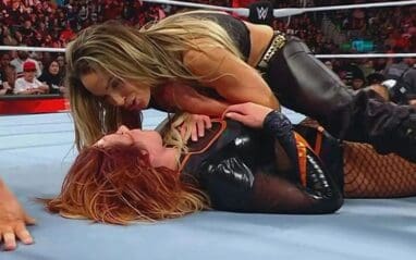 Liv Morgan was able to pin Trish Stratus and win the WWE Women’s Tag Team Titles. This came after Liv ducked under a Chick Kick from Trish. That wasn’t the end of the story by a long shot.