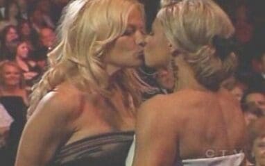 On June 3rd, 2006, WWE Superstar Trish Stratus and Canadian-American actress Pamela Anderson shared a kiss in front of the live audience at Canada’s Walk of Fame ceremony. The moment was captured on video and has since become known as the “smooch heard ’round the world.”