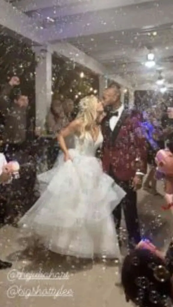 Photos of AEW stars Julia Hart and Lee Johnson’s wedding were shared on Instagram by various attendees and reposted in Julia’s stories. The pictures featured the bride’s beautiful gown, the groom’s sharp suit, and some decor.