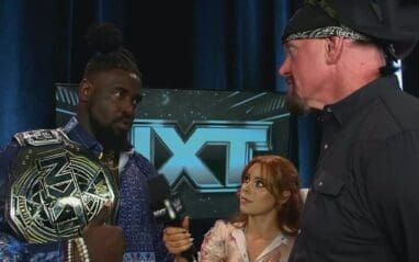 During the April 29 episode of NXT, reigning NXT Champion Oba Femi was backstage giving his thoughts on next week’s 25-man battle royal. The winner of that match will face him for the NXT Title at Battleground. But before Femi could finish his thoughts, the lights dimmed—and The Dead Man walked in.
