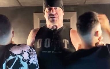In the Instagram video, the Deadman locks both twins into a double chokeslam pose. Just as he grabs them by the throat, the familiar beat of DJ Kato and Jon Nørgaard’s 2010 track “Turn the Lights Off” kicks in, in sync with the viral meme format that’s taken over timelines, with the caption, “When you still got it at 60 years old.”