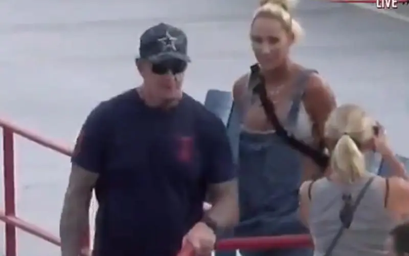The Undertaker and Michelle McCool got out of the house for a bit on Saturday. They attended a softball game marking one of Taker’s first public sightings since his retirement.