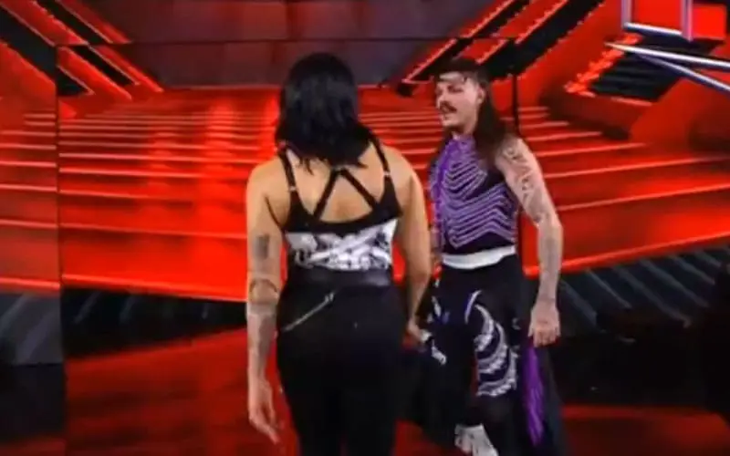 In the climax of this week’s WWE RAW, Liv distracted Rey with a chair, allowing Dom to crotch Rey on the top rope before hitting a splash for the win. Liv jumped into Dom’s arms, and they fell to the mat. Just as it seemed they might kiss, Rhea Ripley’s music played, interrupting the moment. Liv fled through the crowd, leaving Ripley to confront Dom as the show ended.