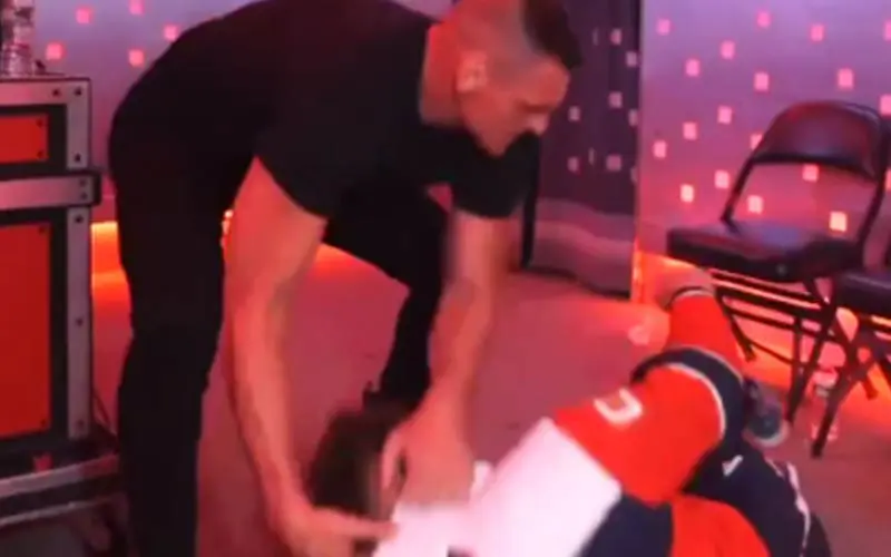 In unseen footage dropped by GUNTHER himself on X, as Candice LeRae and Indi Hartwell were talking backstage, they heard the noise of GUNTHER beating down Gable right next to them, and leading the assault straight from the Gorilla position all the way up to the ring.