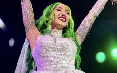 ”Shotzi (Ashley Urbanski, 31), got married on 12/29 to long-time boyfriend Jesus Alfaro. She was on tour and he met her in Las Vegas when they had a show at the MGM Grand. She said that they just decided since they were in Las Vegas to get married, but it was more than that. The two posted a photo and her and Alfaro with their backs to the camera wearing matching black leather jackets that read “JUST MARRIED!” on them. She then said, “When I realized I would be performing in Vegas, we decided to elope before the show. It was very spontaneous and so perfectly us. I loved every second of it. I’ll post something a little mushier later but its now time for an action packed reception!” She then went to the show, still in her wedding dress and they did a unique match build around her just getting married.