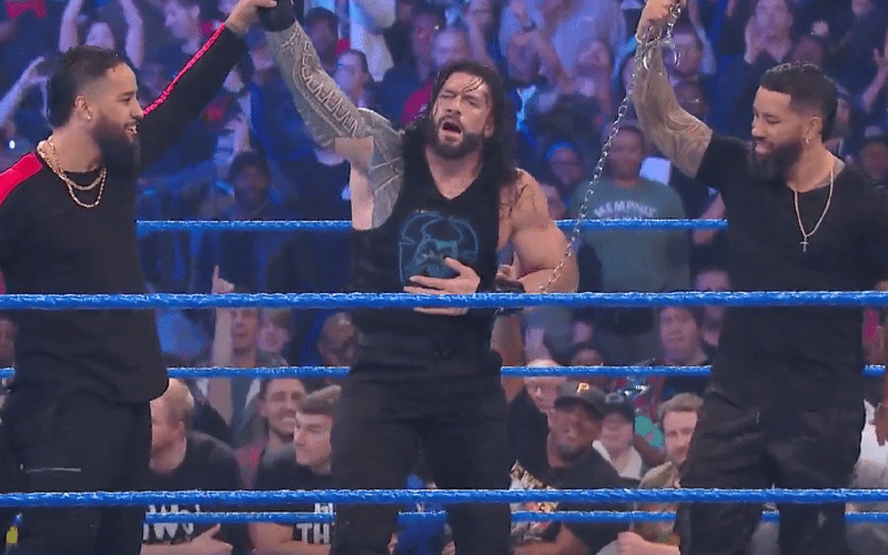 Roman Reigns found himself in a bad situation during the closing moments of SmackDown. The Fiend took out his tag team partner Daniel Bryan and it appeared King Corbin and Dolph Ziggler were going to feed him dog food once again.