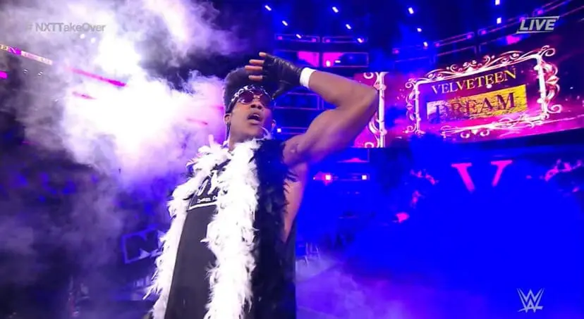 Velveteen Dream paid tribute to WWE Hall of Famer Hulk Hogan yet again last night during NXT TakeOver: War Games. This time around, Dream changed things up a bit- as he based his attire around the “Hollywood” Hulk Hogan attire.