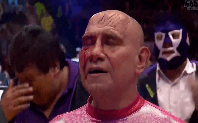 Villano IV came out identifying himself as Tomas Diaz Mendoza, 57, who has been wrestling for 42 years. Villano was defeated after Pentagon snapped his arm for the third time in what ended up being an emotional, bloody brawl.