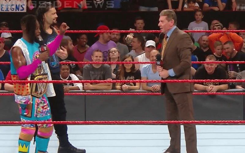 Roman Reigns, Daniel Bryan, and Kofi Kingston came down and they had a back and forth with Vince McMahon. Then McMahon tried to gain some order and he came up with a “brilliant idea” before proclaiming himself as a “genius.”