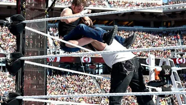 Moxley and Lee were participants in the multi-man Intercontinental Championship Ladder match at WrestleMania 31. One of the highlights of the match saw Brodie Lee throwing Moxley out of the ring and onto a ladder on the outside.