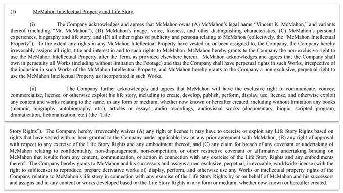 Vince McMahon’s new employment agreement grants him extraordinary IP rights and rights to his life story.