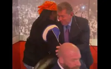 After Wale was finished performing on the grandest stage of them all, he went backstage where he got hugs from Bruce Prichard, Triple H, and Vince McMahon. Wale also took a moment to bow in front of McMahon to pay homage.