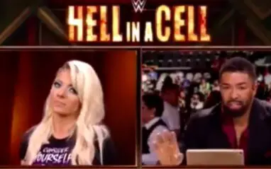 Alexa Bliss appeared during the Hell In A Cell kickoff show to talk about her match against Ronda Rousey. It was Jonathan Coachman’s first night on the kickoff show desk, so Bliss was nice to him. But David Otunga was another story.