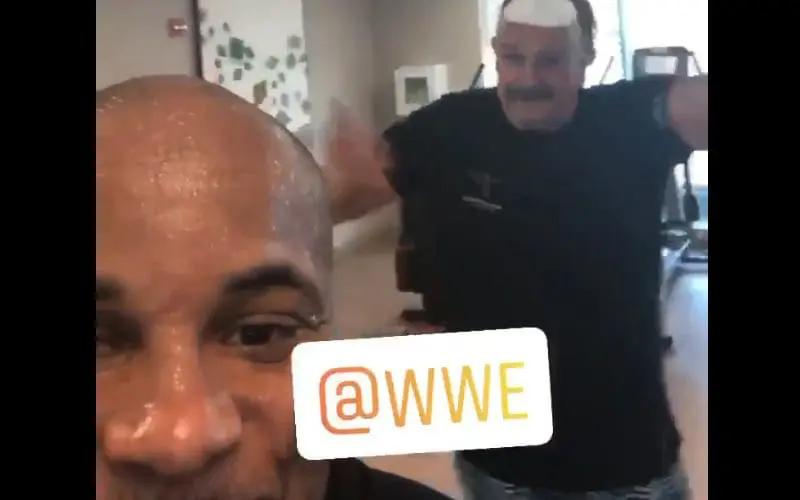 DC posted a video to his Instagram story from what appears to be a hotel gym. He was thrilled to announce that “I’m getting my morning workout and I run into Jake ‘The Snake’ Roberts!”