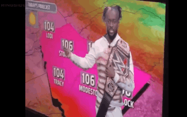 Kofi Kingston was having a great time as WWE Champion while he sat in for an interview with Fox 40. However, his job was just getting started because he got to also help out with the weather.
