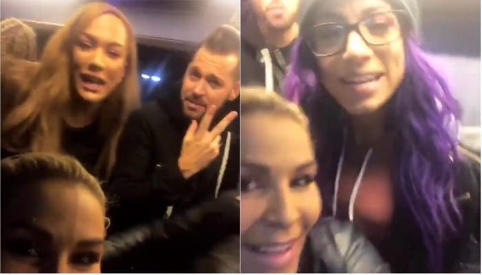 Natalya, Nia Jax, Mojo Rawley, Sasha Banks, and announcer Mike Rome belted out some songs on the bus as they made their way to the Eiffel Tower.
