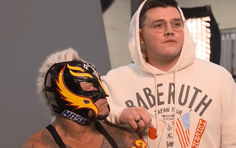 After Mysterio won the WWE United States Title, he went backstage to snap some official photos with his new belt. Dominic was also there to enjoy this experience. Obviously, Mysterio is really enjoying himself right now.
