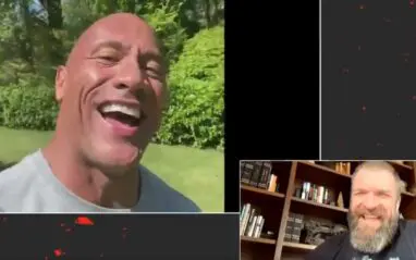 The Rock couldn’t do his usual “Finally…” intro because they’re on lock down and “the neighbors might think some crazy sh*t is going down.” He said it was an honor to be able to celebrate Triple H’s career. Then Johnson spoke about how lucky they both are before talking about how Triple H always supported him.