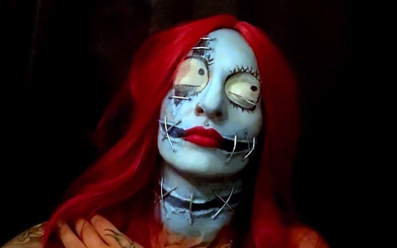 Ruby Riott doesn’t wear face paint in WWE, but she has a ton of tricks up her sleeve if they need her to disguise her identity. She recently took on the challenge of transforming herself into Sally from Nightmare Before Christmas, and it was a huge success.