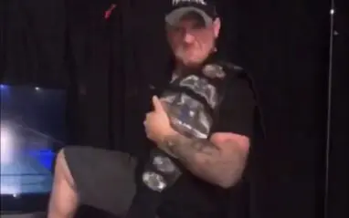 Blanchard is very active on social media and she recently put up a little video of Callihan posing with her title. Although he isn’t nailing Tessa’s pose, he has his own Knockouts style as he holds the title.