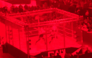 The red lights stayed on the entire time. The finish came when Rollins tried to escape the cage through its door, but Wyatt blocked his way. After several Superkicks and a couple stomps, Rollins climbed the cage, but Wyatt followed him up and brought him back into the ring.