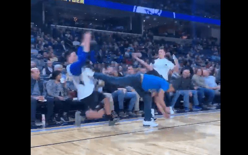 The Young Bucks showed up at the Memphis Grizzlies game tonight and as you can see, things escalated quickly. The Jacksons threw some Superkicks and everyone had a good time.