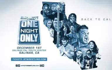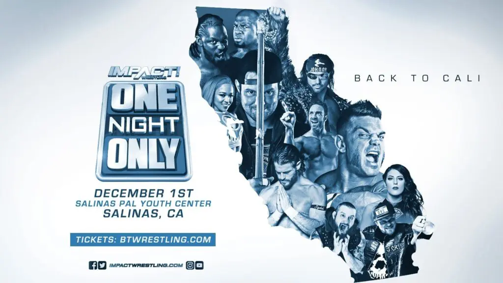 Impact Wrestling heads to Salinas, CA to tape the upcoming One Night Only: Back to Cali pay-per-view event for the GWN app. Below are the confirmed matches for the show.