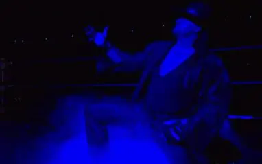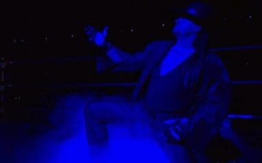 Chants of “Thank you Taker” boomed around him as he continued. “My time has come to let The Undertaker rest in peace.” Then he struck his iconic pose as Paul Bearer’s “oh yes” played over the speakers. The a holographic version of Bearer appeared before Taker.