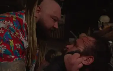 Braun climbed out of the lake and Bray was nowhere to be seen. Suddenly, laughing children flashed on the screen as Wyatt destroyed an ore over Strowman. Other disturbing images continued to flash as Wyatt carried on with his assault.