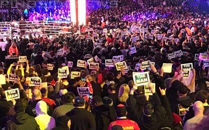 • WWE’s staff passed out Becky Lynch “The Man” signs to a ton of people in the crowd before the WWE Women’s Title match.