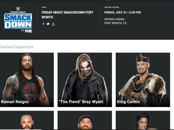 The first United States date on WWE’s website is listed for July 31st, 2020 in Fort Worth, Texas. This is listed as an episode of Friday Night SmackDown. Roman Reigns is also slated to be there. Of course, the card is always subject to change as the event could be postponed as well.