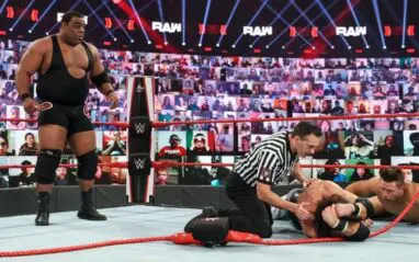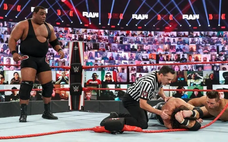Keith Lee is a very powerful man, and his shove into the corner broke that turnbuckle, but it was all part of the show. It’s interesting that WWE staged something going wrong to hook people into watching RAW, but they also had a huge college football game as direct competition this week. So, they needed to try everything they could think of.