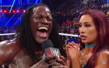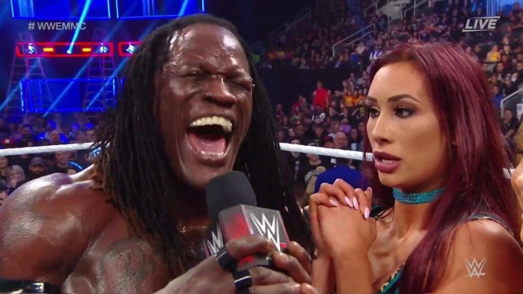 Carmella and R-Truth kicked off WWE TLC by winning over Jinder Mahal and Alicia Fox. It was a pretty fun match and the crowd got to pop when Mella and R-Truth won. Then R-Truth threw everyone for a loop when he decided that their tropical vacation would be WWE HQ in Stamford Connecticut.