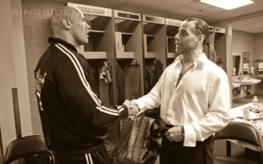 "There was a time when The Midnight Rockers were on a show in Hawaii and Rock's grandmother was the promoter and I guess that there problems in the dressing room and Rock wanted to beat up Shawn I think. I think Shawn was acting like a dick, so that didn't help." "Then when Rock was on his ascension, everyone will say this didn't happen, but it did. It was very clear what was going on and there were certain people, Shawn being one of the key ones and it was pretty much to protect Hunter. Because Hunter and Rock were pretty much vying for the same spot." "So a lot of people saw that The Rock had a lot of friends and he had a lot of potential and I think that they wanted to make sure that he didn't get there and I thin that he's smart enough to see that happened. So when he got to the point where he was a big star, he didn't want to work with [HBK]." "Now today, he said since that he would do it but he's not working with anybody today."