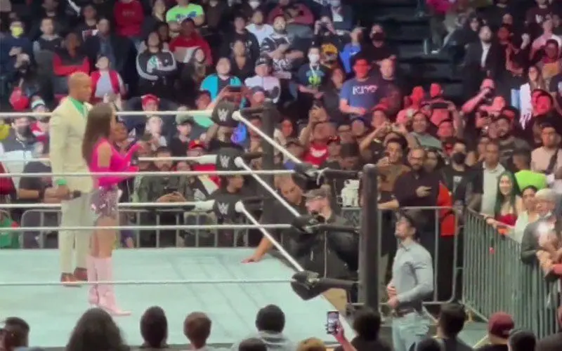 Ringside News received a tip from a fan in attendance about an incident at a WWE Live Event in Mexico City, Mexico on Sunday, October 30th. Quetzalli Bulnes, the host of WWE Ahora on YouTube, wanted to give an unplanned spot on the show to one of her friends, a wrestling YouTuber from Spain named Falbak, who was in ringside.