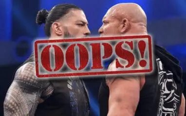 We have no idea why WWE would display that text. Roman Reigns is not set to take on Goldberg at the show of shows. The match is currently Edge vs Roman Reigns for the Universal Title. This is quite an interesting mistake on WWE’s production. They rarely make mistakes and it’s even more intriguing that they had that text ready to go.