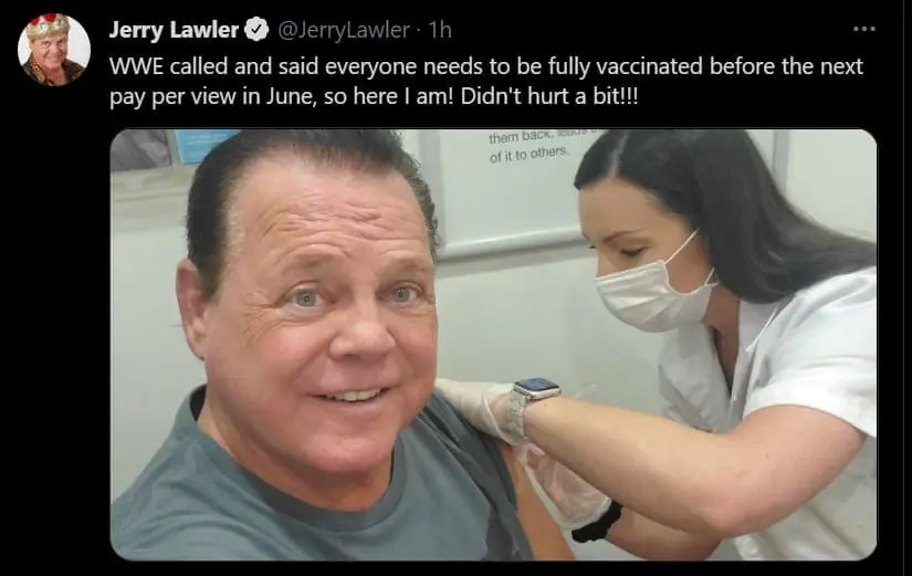 Jerry Lawler tweeted out to inform fans that he is getting vaccinated as well. He also threw out a very interesting note as ‘everyone’ was apparently told by WWE to get their shots in by the June pay-per-view.