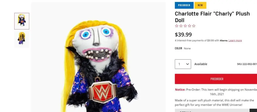 WWE wasted zero time getting a creepy plush Charlotte Flair doll on their shop. This just goes to show that one thing the company 100% plans out is their marketing.