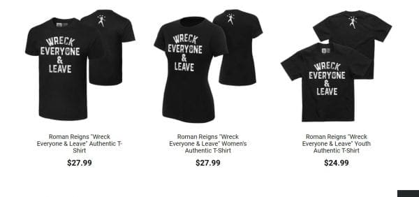 Roman Reigns was sporting a new t-shirt when he returned. His new merch says: “Wreck Everyone & Leave.” That is exactly what he did at SummerSlam.