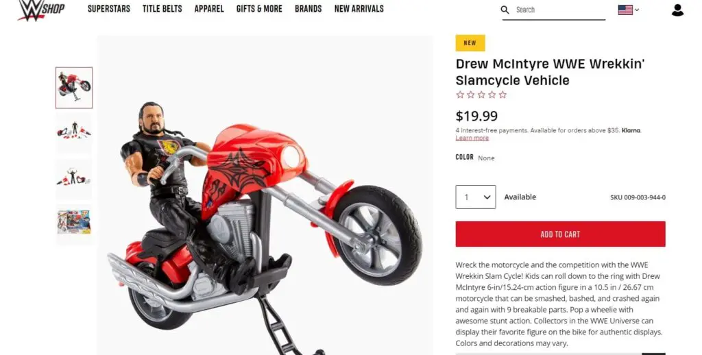 Drew McIntyre’s segment on RAW this week was likely planned well in advance. Fans can already buy one of these motorcycles for $20 from the WWE Shop. You can check it out below. It seems like this segment is an example of long term planning, if only to get a new toy out.