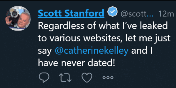 In a tweet that he quickly deleted, Scott Stanford said that he has “leaked” information to “various websites” about Kelley’s relationship. Apparently, the joke was that he was leaking information about the two of them, but he cleared it up quickly.