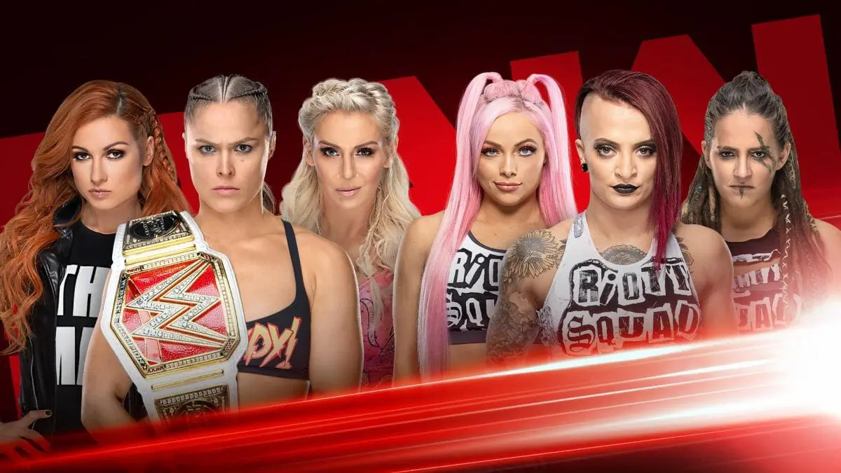 It was announced that Ronda Rousey, Becky Lynch, and Charlotte Flair will have a beat the clock challenge against each member of The Riott Squad to start off RAW.