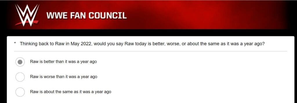 The survey included a separate question for SmackDown as well. Sadly, the results were not revealed upon conclusion of the survey, but we can only imagine that many fans are much more satisfied than they were when Vince McMahon was calling all the shots.