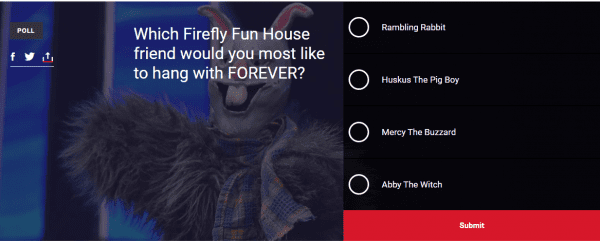 The results of this poll were not displayed which is kind of a bummer. It would be interesting to see which Firefly Fun House puppet connects with WWE fans the most. The company is about to have that information which is who needs to know that the most.